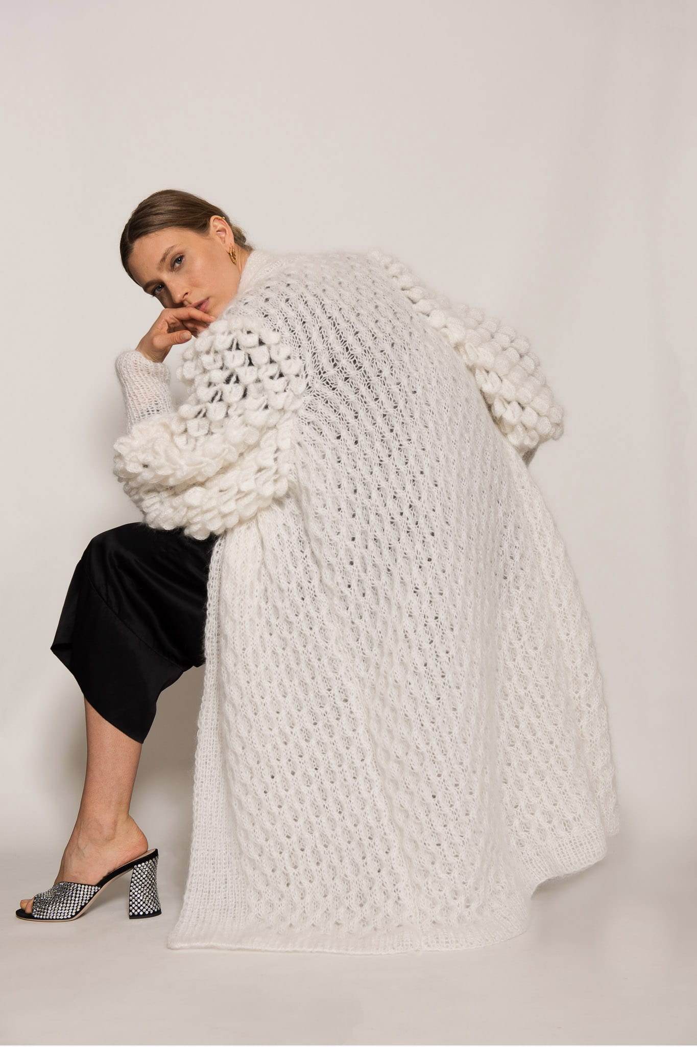 All of our Lace, Mohair and Silk coats are made with 75% Baby Mohair 25% Silk.