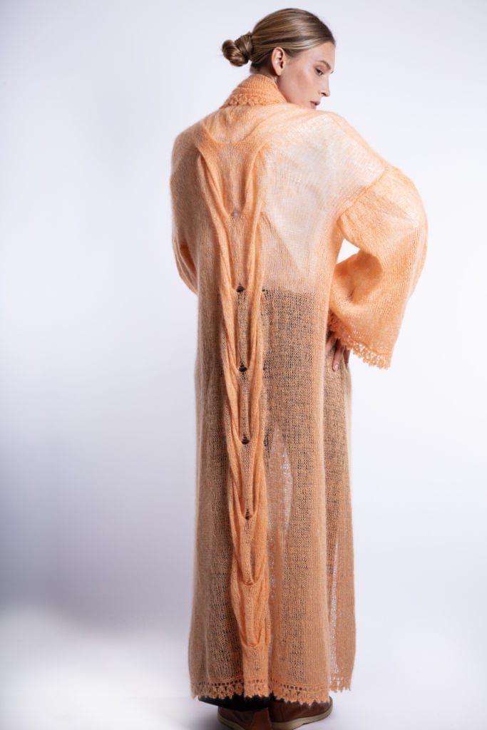 All of our Lace, Mohair and Silk coats are made with 75% Baby Mohair 25% Silk.
