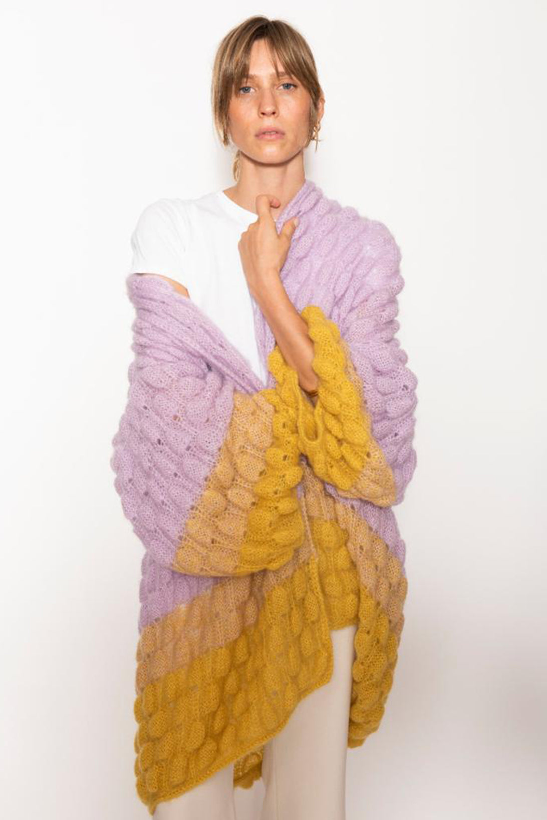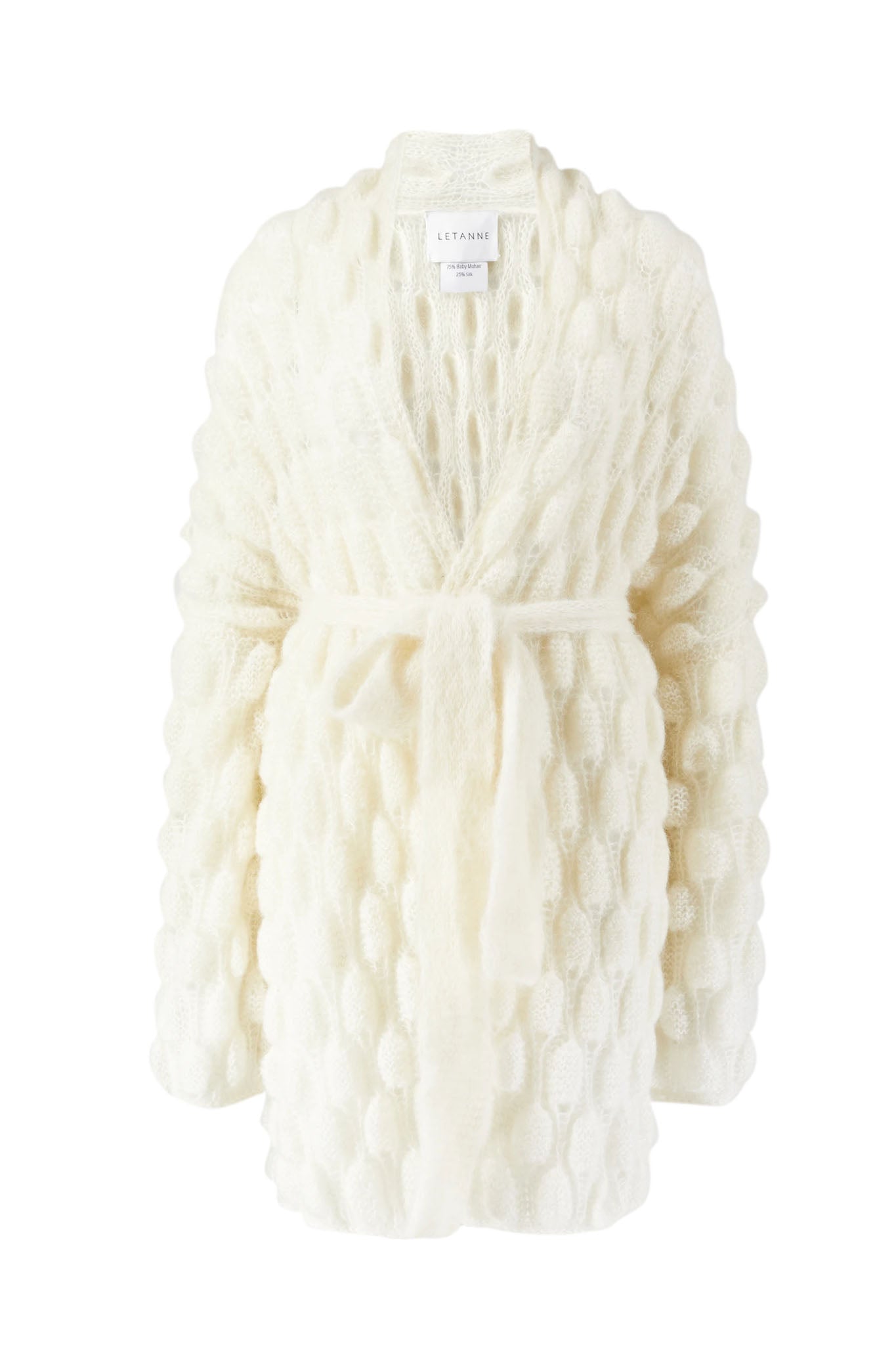 All of our Lace, Mohair and Silk coats are made with 75% Baby Mohair 25% Silk.