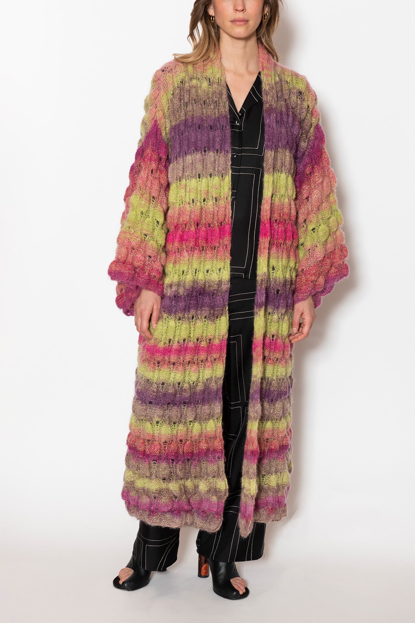 All of our Lace, Mohair and Silk coats are made with 75% Baby Mohair 25% Silk.