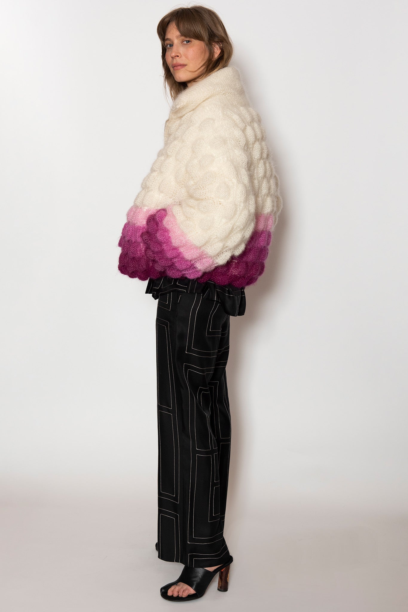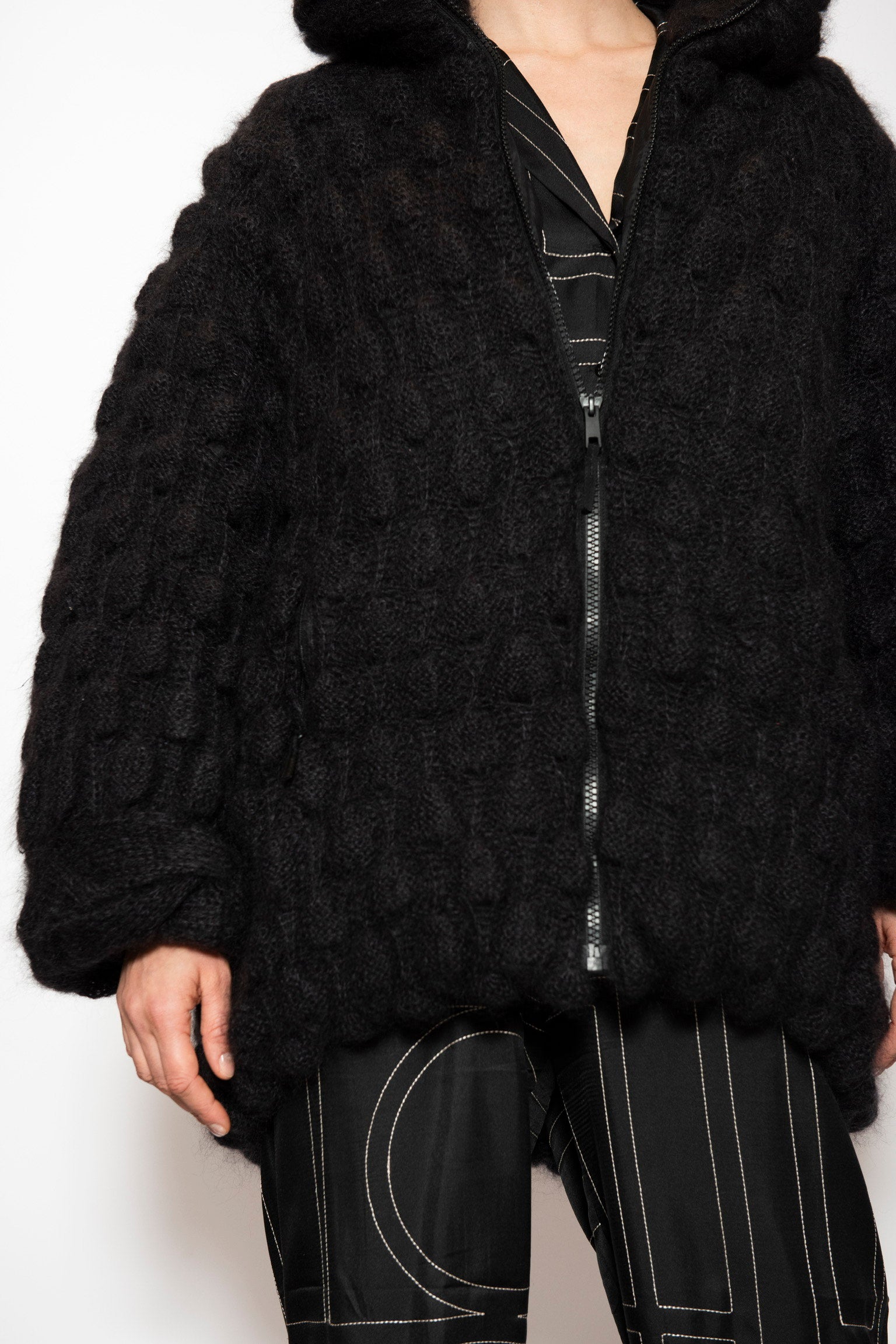 All of our Lace, Mohair and Silk coats are made with 75% Baby Mohair 25% Silk.