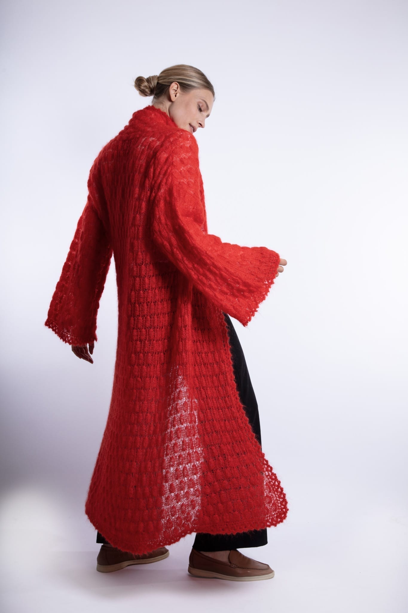 All of our Lace, Mohair and Silk coats are made with 75% Baby Mohair 25% Silk.