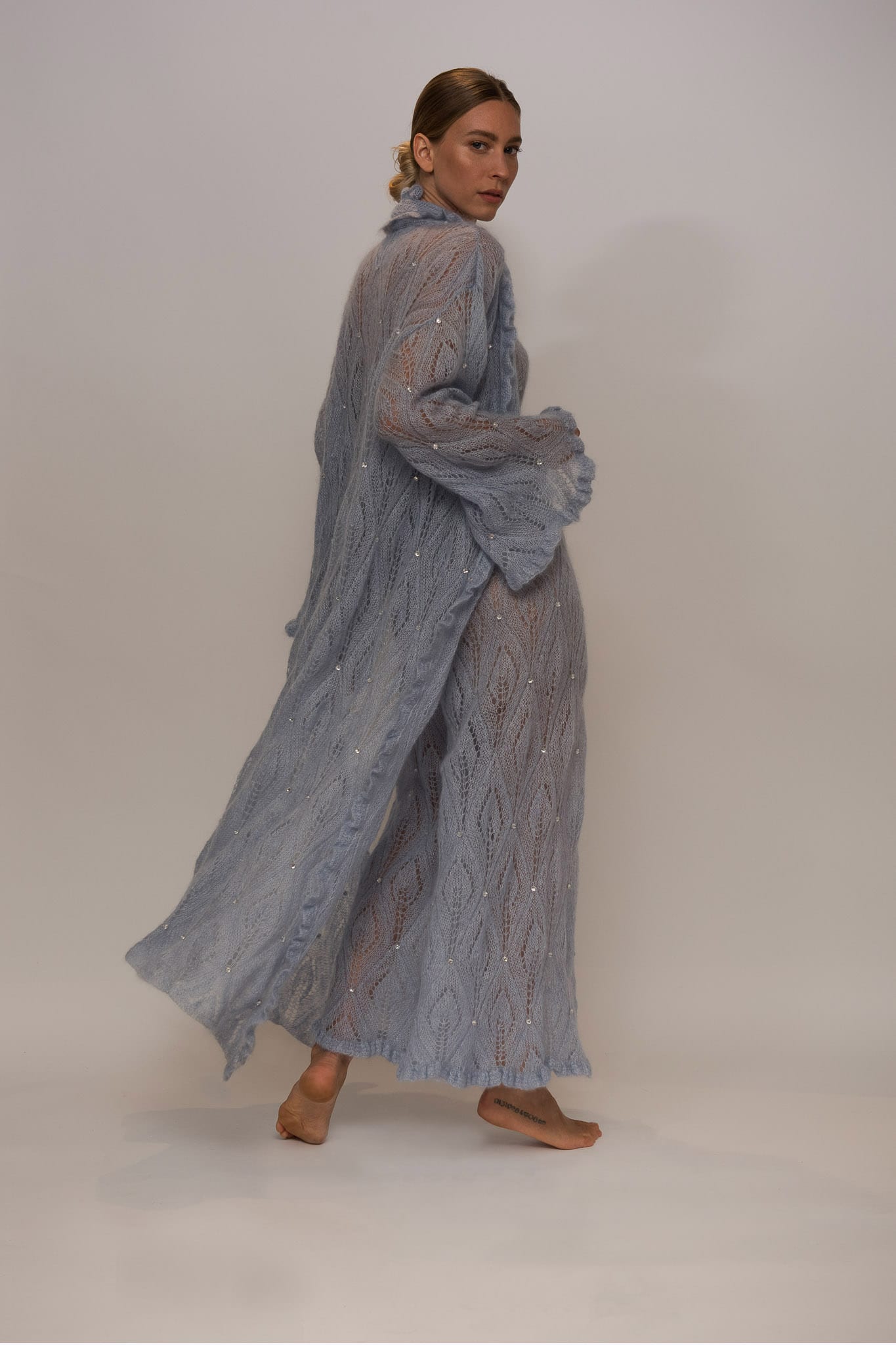 All of our Lace, Mohair and Silk coats are made with 75% Baby Mohair 25% Silk.